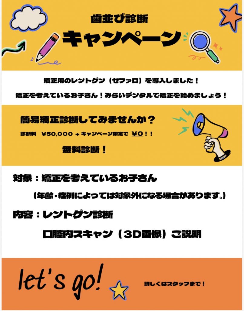 そういった矯正についての診断を当院では今だけ無料で行なっております!